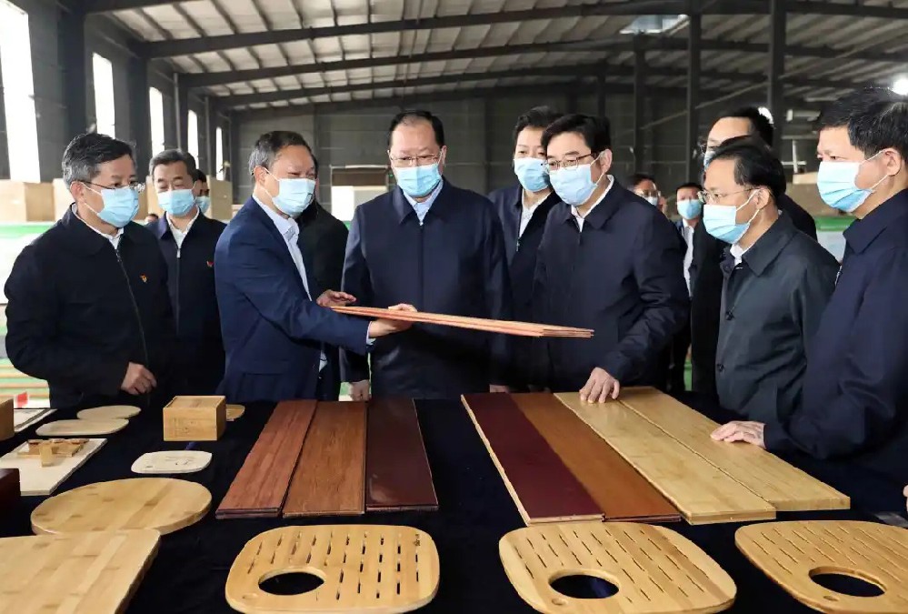 2025年6月16日,省政協(xié)副主席虢正貴來湖南桃花江竹材科技股份有限公司調(diào)研生態(tài)資源轉(zhuǎn)化與特色產(chǎn)業(yè)融合發(fā)展。公司董事長(zhǎng)、省人大代表薛志成陪同并介紹情況。虢正貴充分肯定了桃花江竹材在竹資源利用及竹特色產(chǎn)業(yè)融合發(fā)展所取得的成果,他鼓勵(lì)企業(yè)繼續(xù)發(fā)揮龍頭優(yōu)勢(shì),充分利用好桃江資源稟賦和產(chǎn)業(yè)優(yōu)勢(shì),深化產(chǎn)學(xué)研融合,提升竹產(chǎn)業(yè)附加值,為民族地區(qū)生態(tài)資源高效轉(zhuǎn)化和特色產(chǎn)業(yè)融合發(fā)展探索更多經(jīng)驗(yàn)。